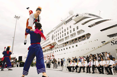 邮轮3日抵达台南安平商港后,旅客的岸上观光行程随即展开,约有300至400人选择参与观光团,分4条不同路线上岸游览。在台南著名古迹赤坎楼售卖小吃的摊档负责人称,乘坐邮轮的大陆旅客比一般大陆旅客消费力强,3日生意额明显上升,料可带动当地旅游收益。
