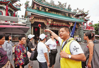 邮轮旅客到台南标志赤坎楼参观。(图片来源:文汇报)