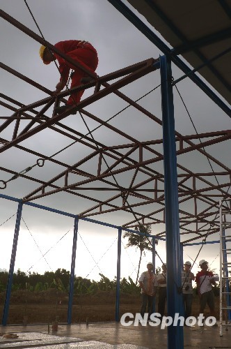 8月25日,大陆技术人员在台湾灾区展开援建工作。大陆捐赠台湾灾区前三批约六百套活动板房已送抵高雄县、屏东县多处受灾民众安置地,搭建工程将于近期展开。