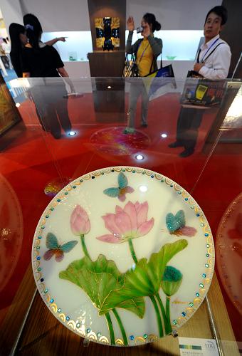 9月17日,观众在台湾工艺品展位前参观。新华社记者 孙参 摄
