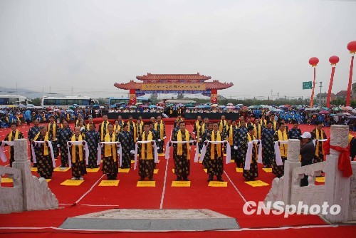 9月27日,湖北当阳关陵举行盛大的关公秋祭大典,来自海峡两岸的关庙代表、关氏宗亲和关公信众以及当地民众共计万余人祭拜关公。中新社发 郭晓莹 摄
