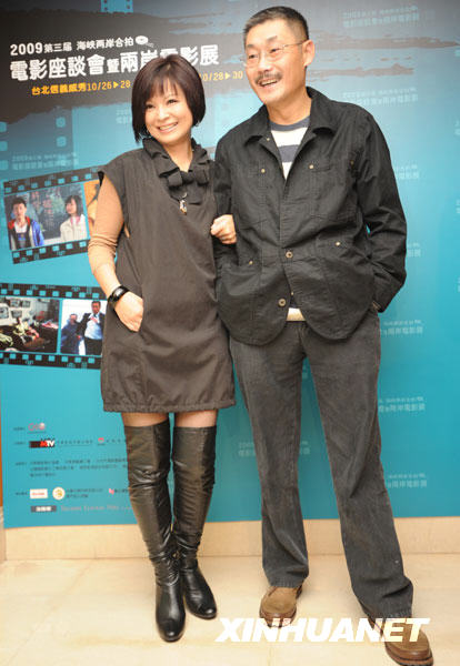10月26日,大陆导演何平(右)与台湾演员杨贵媚出席两岸合拍电影座谈会暨两岸电影展开幕酒会。