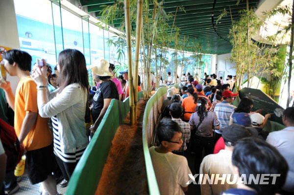 11月8日,在台北市立动物园,市民和游客排长队观看“团团”和“圆圆”。新华社发(吴景腾 摄)
