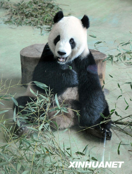 11月8日在台北市立动物园拍摄的大熊猫“团团”。新华社发(吴景腾 摄)