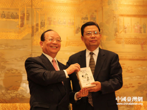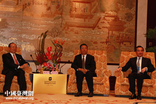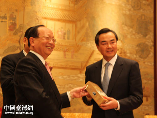 18日晚上,国台办主任王毅、陕西省委书记赵乐际在西安会见了中国国民党副主席蒋孝严率领的台湾企业界、工商界代表一行。(中国台湾网 肖燕 摄)