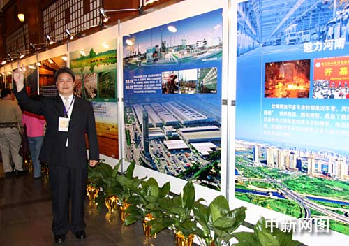 12月16日,由“中原文化宝岛行”访问团主办的“魅力河南图片展”在台北圆山大饭店开展。图为台湾一名旅行社的经理在参观后做手势称赞确有魅力。中新网发 陈立宇 摄
