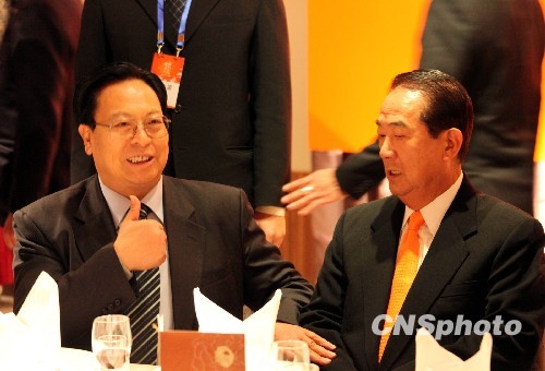十二月十六日,亲民党主席宋楚瑜在台北市宴请中共中央委员、原河南省委书记徐光春率领的“中原文化宝岛行”访问团。中新社发 曾嘉 摄