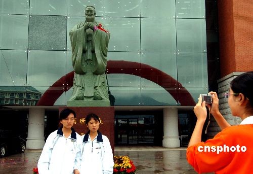 资料图:二零零八年十一月八日,由著名雕塑家陈一帆雕塑的孔子塑像在福建中医学院福州旗山校区落成。当日,福建中医学院建校五十周年庆祝大会在福州旗山校区隆重举行。来自海内外的福建中医学院校友、来宾及在校师生六千多人出席该学院建校五十周年庆祝大会。 中新社发 刘可耕 摄