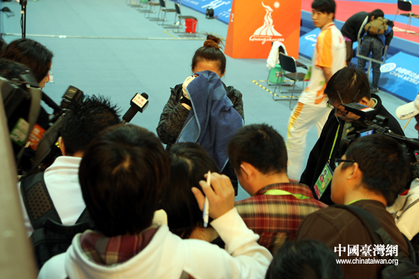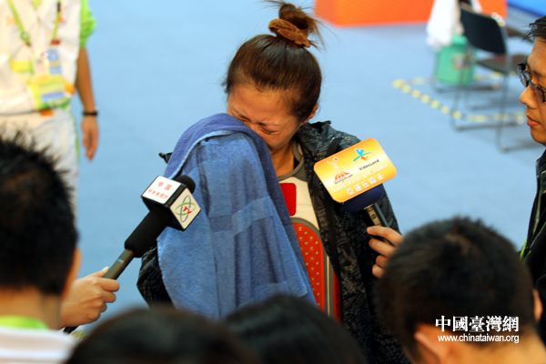 赛后接受媒体采访时,杨淑君拭泪不断。(中国台湾网 钟宝华 摄)