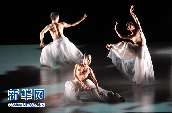 11月18日,台湾舞蹈团体“云门舞集”的舞者在台北戏剧院举行的《屋漏痕》彩排记者会上表演。新华社发(吴景腾 摄)