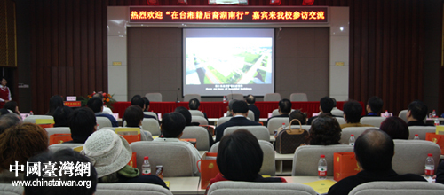 其中教育组由七十余名台湾嘉宾组成,他们的家乡分别是常德、娄底、怀化、张家界。本网记者跟随教育组来到湖南中医药大学,听取校方介绍学校基本情况及对台教育交流的情况。