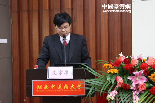 湖南中医药大学国际教育学院院长、港澳台办公室主任彭清华教授介绍对台教育与交流情况(中国台湾网 杨永青 摄)