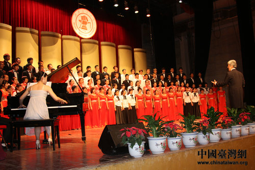 国家一级指挥刘燕平先生指挥两岸青年演唱《怒吼吧,黄河》(中国台湾网 郭莹莹 摄)