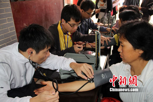 据悉,此次“两岸医学生暑期社会实践”由台湾阳明大学和西安交通大学联合举办,20名两岸医学生深入陕西蓝田县医院、葛牌乡卫生院以及当地居民家庭,进行基层卫生机构调查、居民卫生健康状况调查和居民卫生普教活动。2010年,两岸医学生首次在蓝田县开展社会实践,反响良好。
