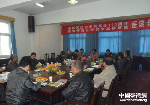 中国台湾网11月3日宿迁消息 日前,安徽宿州市埇桥区委统战部、埇桥区台办召开纪念辛亥革命100周年座谈会,学习胡锦涛在纪念辛亥革命一百周年大会上重要讲话,缅怀埇桥区辛亥女杰杨紫霞。副区长夏金叶、埇桥区政协副主席关正林及市、埇桥区有关部门,区民主党派负责人参加座谈会。(中国台湾网宿迁埇桥区台办通讯员陈秀娥)