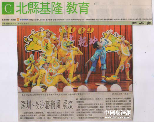 中国台湾网2月24日消息 “花儿朵朵·贺奥运暨台湾心·两岸情第一届海峡两岸少儿艺术展演活动”2月2日在台湾基隆市文化中心演艺厅隆重举行。