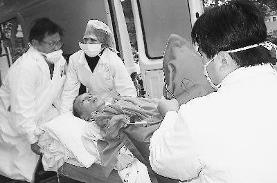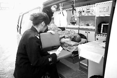 台胞柯懋钦先生被送上前往厦门的救护车。