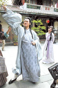图为两岸共同投资的《神医大道公》拍摄现场。图片来源:台湾《中国时报》