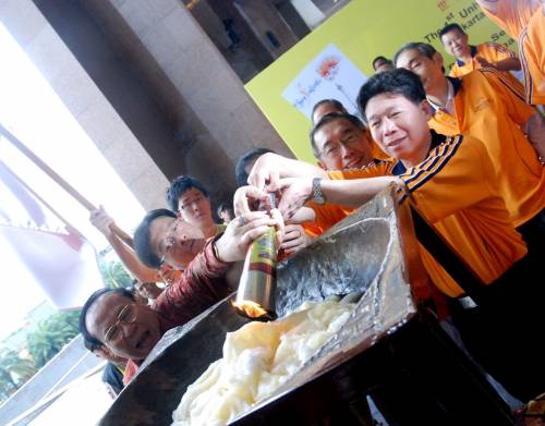印尼赛区组委会主席黄柏、林文光、聚博圣等人,点燃华运会圣火。(图:印尼星洲日报)