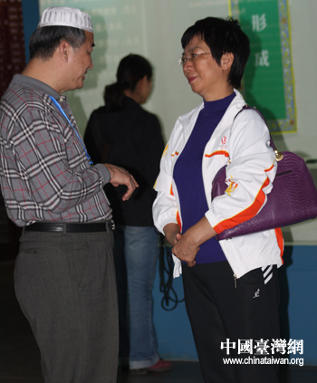 宁夏台办主任张秀燕(右)同冯国瑜亲切交谈 (中国台湾网 王伟 摄)