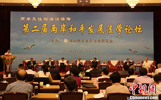 8月14日,第二届两岸和平发展法学论坛在北京召开。本次论坛由海峡两岸关系法学研究会主办,来自两岸法学界、法律界专家学者共180余人出席论坛。中新社发 陈小愿 摄