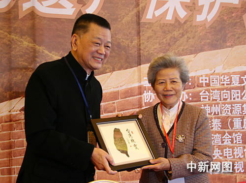 台湾收藏家王度向林丽韫赠送工艺礼品