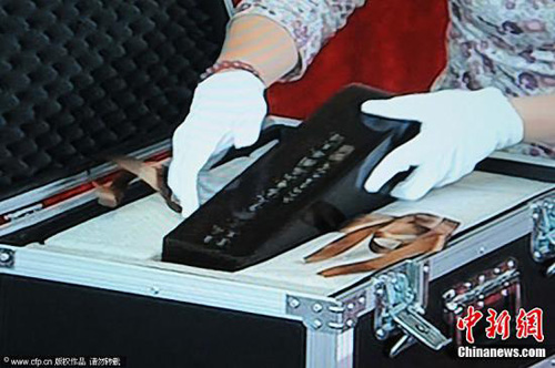 5月11日,浙江省博物馆的“镇馆之宝”《富春山居图》前半段《剩山图》赴台启运仪式在杭州举行。朱引炜 摄 图片来源:CFP视觉中国