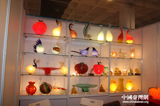 “台湾文创精品馆”内展出的琉璃制品。(中国台湾网 房琳琳 摄)