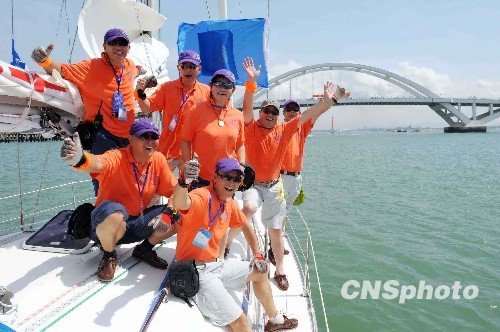 记者在厦门五缘湾看到,十五艘帆船同时升起主帆,彩旗飘飘、运动员进行曲激昂,水手整齐列队站在甲板上接受海峡两岸贵宾检阅;厦门口岸、边检、海事、海关、检验检疫等部门的工作人员为参赛船只、船员快速办理出关离港手续。