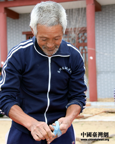 河南非物质文化传承人、60多岁的于金升老人表演。