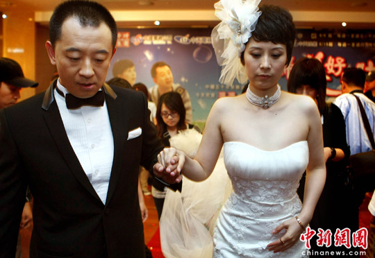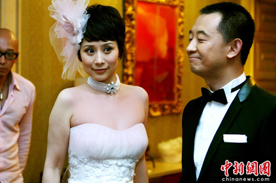 6月7日相关单位在台北举行记者会,剧中毛豆豆扮演者海清、余味扮演者黄海波身著结婚礼服到场与记者、影迷互动,会上“小两口”相互喂食的甜蜜情节,将活动推向高潮。中新社记者 宋吉河 摄