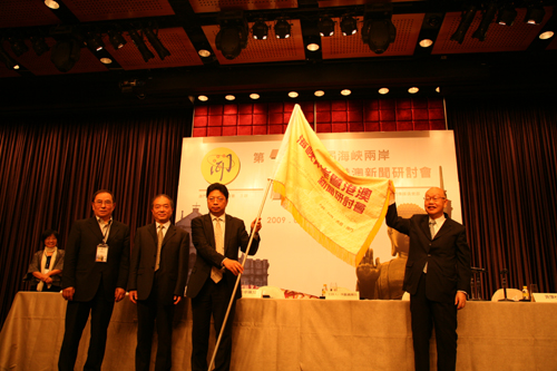 闭幕式上,李鹏翥先生把研讨会的会旗转交到香港新闻行政人员协会主席、南华早报资深编辑杨健兴手中,并相约2011年在香港举行下届新闻研讨会。