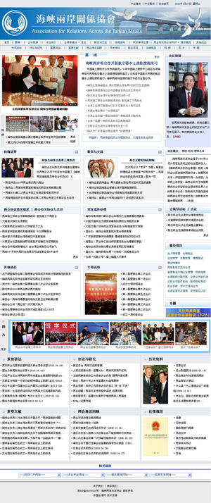海峡两岸关系协会网站由海峡两岸关系协会主办,主要发布海协会的机构组成与开展工作的权威信息,旨在展示两会协商进展情况、两会交往中具体事宜及突发事件处理情况、两会人员交流往来情况、与台湾同胞、港澳同胞、海外华人华侨的联系交往情况等工作动向,服务两岸交流交往,促进两岸关系和平发展。