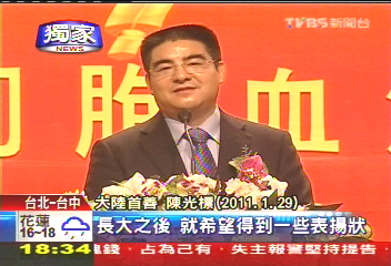 中国台湾网2月15日消息 据台湾TVBS电视台报道,近日,台湾一些媒体记者陆续收到两份礼物,寄件人不是别人,正是日前赴台行善的“大陆首善”陈光标。据悉,陈光标年前到台湾发红包,宣称捐出5亿新台币,一举一动成媒体关注焦点。陈光标2月1日回大陆后,曾经随行采访的台湾记者都收到他亲笔签名的贺年卡,之后陈光标又快递一份荣誉证书,称赞台湾记者报道行善吃苦敬业,特授予功德无量奖。