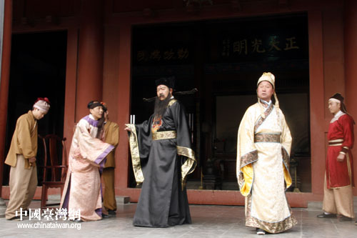 “开封府”内,另外一位铁面“包公”审案,为百姓申冤。(钟宝华 摄)