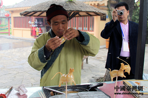 糖人艺术家马大吹现场展示。(中国台湾网 董洁 摄)