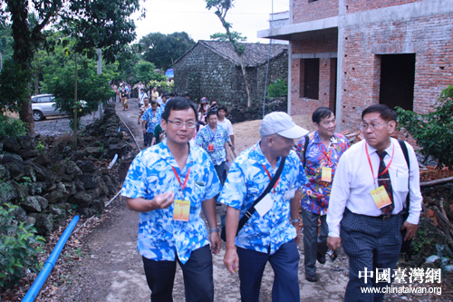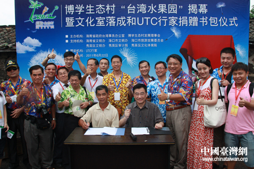 上午,记者们来到海口市秀英区永兴镇博学生态文明村参观。据村长介绍,2009年11月,博学村在村里第一个大学生陈统奎的组织带领下,确定了将博学村从一个传统农村转型为一个结合有机农业、生态保育和休闲体验为一体的教育基地的发展愿景。2010年6月2日,博学村与台湾桃米村签署姐妹村协议,成为两岸第一例姐妹村,堪称琼台基层交流的典范。同天,由海南省台办牵头资助的台湾水果园也正式启动建设。