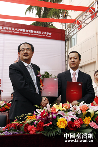 两岸业者代表签署《海峡两岸皮肤美容合作协议》。(中国台湾网 杨丽 摄)