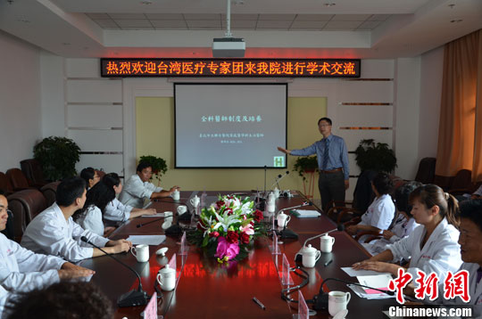 中新社西宁8月7日电 (赵帅)一个由7人组成的台湾医疗卫生交流团近日赴青海交流。该交流团7日参访了西宁市第一人民医院,并与该院医护人员交流经验。