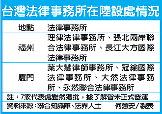 台湾法律事务所在大陆设办事处情况一览。 图片来源:台湾《经济日报》