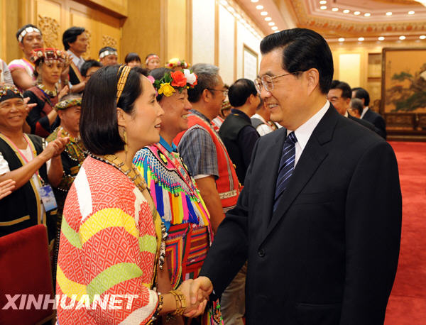 胡锦涛指出,台湾少数民族同胞是中华民族大家庭的重要成员。长期以来,你们为抵御外来侵略、捍卫民族尊严进行了不屈不挠的斗争,为中华民族的发展和台湾的开发建设作出了不懈努力,为推动两岸关系的改善和发展作出了重要贡献。你们以自己的行动证明,两岸同胞和衷共济、齐心协力,就一定能保护好、建设好我们的共同家园,开创两岸关系和平发展的新局面。