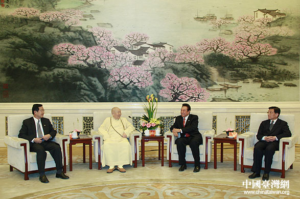 4月23日上午,陈云林在北京会见台湾中台禅寺开山方丈惟觉长老。(中国台湾网 钟宝华 摄)