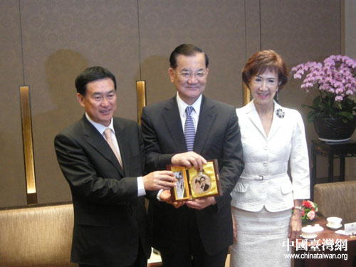 中国台湾网5月25日台北消息 国民党荣誉主席连战及夫人连方瑀24日晚会见了刚刚抵达台北的河北省副省长杨崇勇一行。