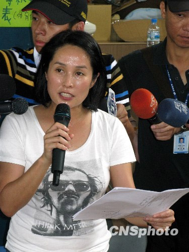 台湾少数民族代表团团长高金素梅返台后,二十二日赶往屏东县三地门乡安置中心向少数民族受灾户说明大陆之行成果。
