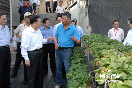 在武荣村山顶果园农场里,农户范锈龙向罗清泉一行介绍了发展观光农业,销售主要通过网路订购和团体采购,草莓生产主要采取高架栽培方式,以及通过农会获取农业创业贷款等情况。罗清泉饶有兴致地听着,并仔细询问了果苗病害防治、农村饮水、污水处理、农民就医等问题。他热情称赞范锈龙懂技术、善管理,是一位高素质的新型农民。认为农会组织在地方政府、市场和农户间搭起了一座沟通的桥梁,这种组织方式值得借鉴。他还热情邀请范锈龙先生到湖北来给农村干部和农民讲课,开展农业技术交流。