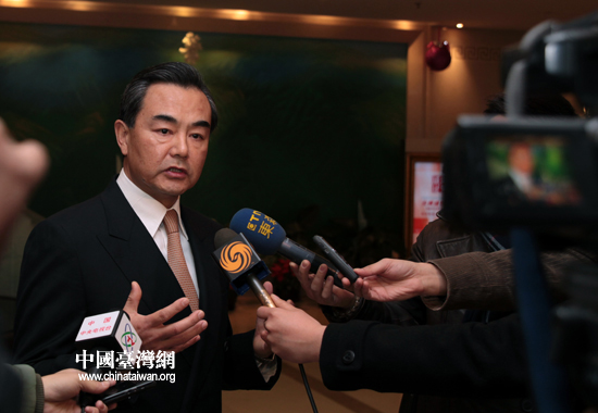 12月22日下午,中共中央台办、国务院台办主任王毅到首都机场迎接从台北返回北京的海协会会长陈云林一行。图为王毅在机场接受媒体采访。(中国台湾网 田云鹏 摄)