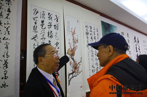 台湾嘉宾现场交流书画作品(中国台湾网 吴晓寒 摄)