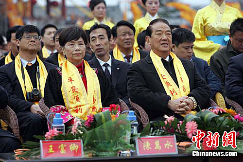 台湾亲民党主席宋楚瑜5日在洪洞大槐树寻根祭祖园祭拜宋氏先祖。张云 摄