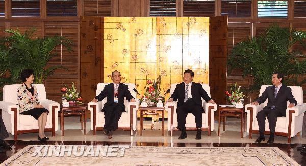 中共中央台办、国务院台办主任王毅,中国人民银行行长周小川,中共海南省委书记卫留成,海南省省长罗保铭等参加了会见。