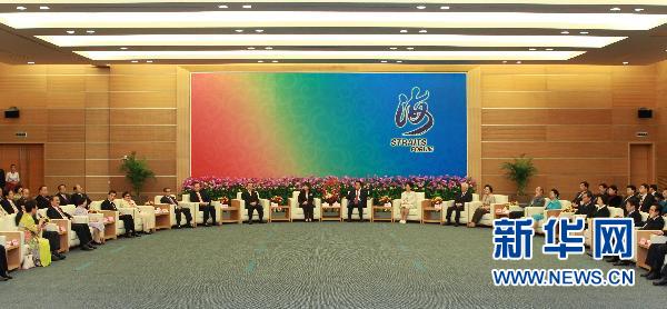 6月19日,中共中央政治局常委、全国政协主席贾庆林在厦门会见出席第二届海峡论坛的两岸各界人士。新华社记者 庞兴雷 摄
